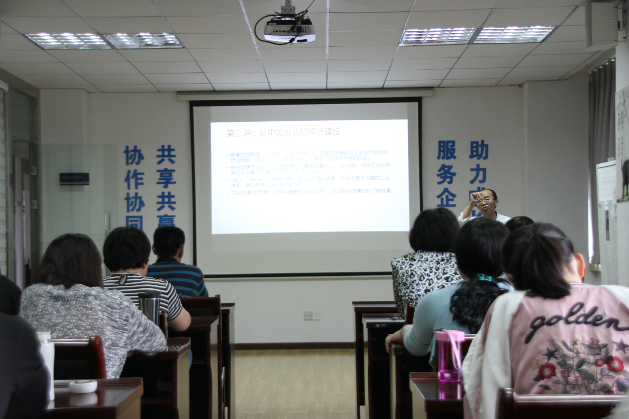 培训以“湖北工业纵横”为主题,特邀湖北工业史研究方面的专家梅训安同志主讲。湖北是中国近代工业重要发祥地,也是新中国工业发展的重要基地。讲座从张之洞1889年督鄂谈起,共分四个部分:张之洞督鄂——近代湖北经济发展高潮,江汉路的前世今生——湖北民族工商业的发展,新中国湖北的经济建设,弯道超车——改革开放以来湖北国民经济与社会发展,浓缩了十九世纪80年代至今湖北以工业化推动社会全面变革的历史进程。讲座以史实为依据,资料翔实,展示了大量珍贵的历史图片,深入浅出的讲述了以武汉为重点的湖北工业发展历史,与时代发展和全国工业发展状况紧密结合,既充分肯定湖北工业发展特别是工业起步阶段的积极方面,也不回避工业发展中存在的问题和薄弱环节,尤其是改革开放四十年来,湖北国民经济持续、快速发展,经济总量和人均水平实现了大跨越。