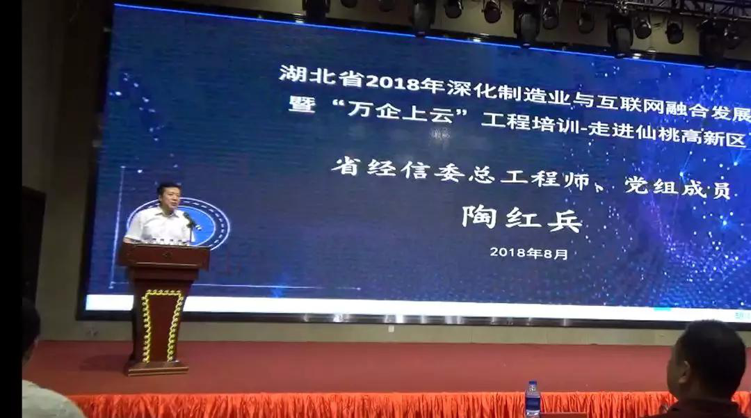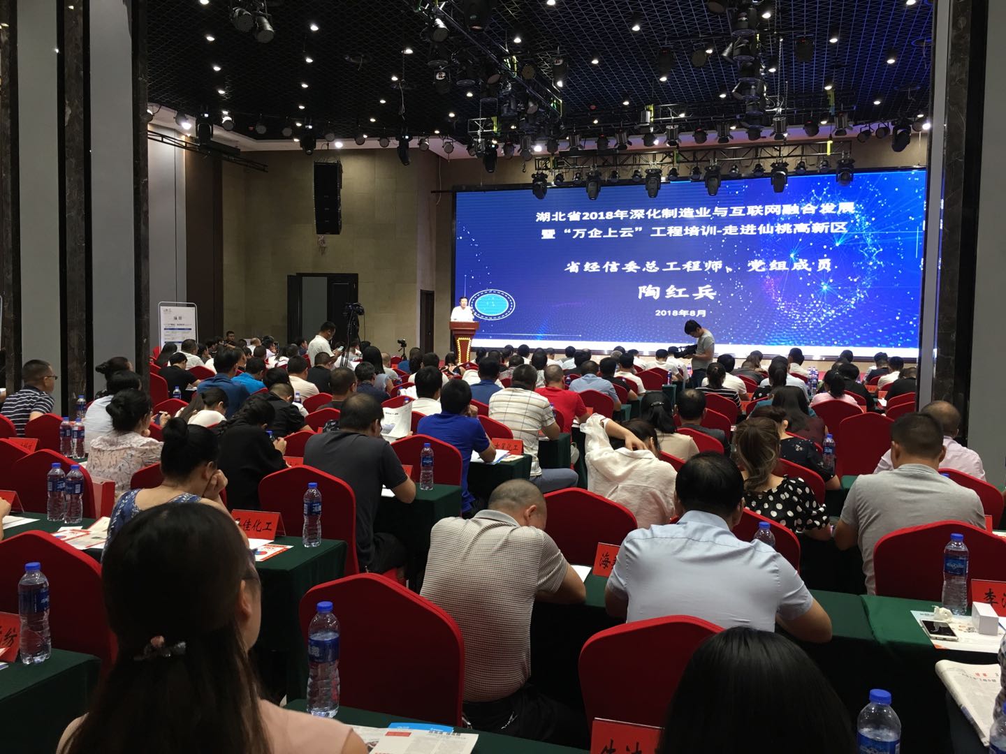8月2日,由湖北省经济和信息化委员会主办,省中小企业服务中心(省经信委信息中心)、仙桃市经信委、仙桃市高新区联合承办的全省2018年深化制造业与互联网融合发展暨“万企上云”工程培训走进仙桃高新区站成功举办。省经信委总工程师、党组成员陶红兵出席会议并致辞,仙桃市人民政府副市长王治恒、省经信委信息化推进处处长董爱军、省中小企业服务中心主任李承绘等出席本次会议。