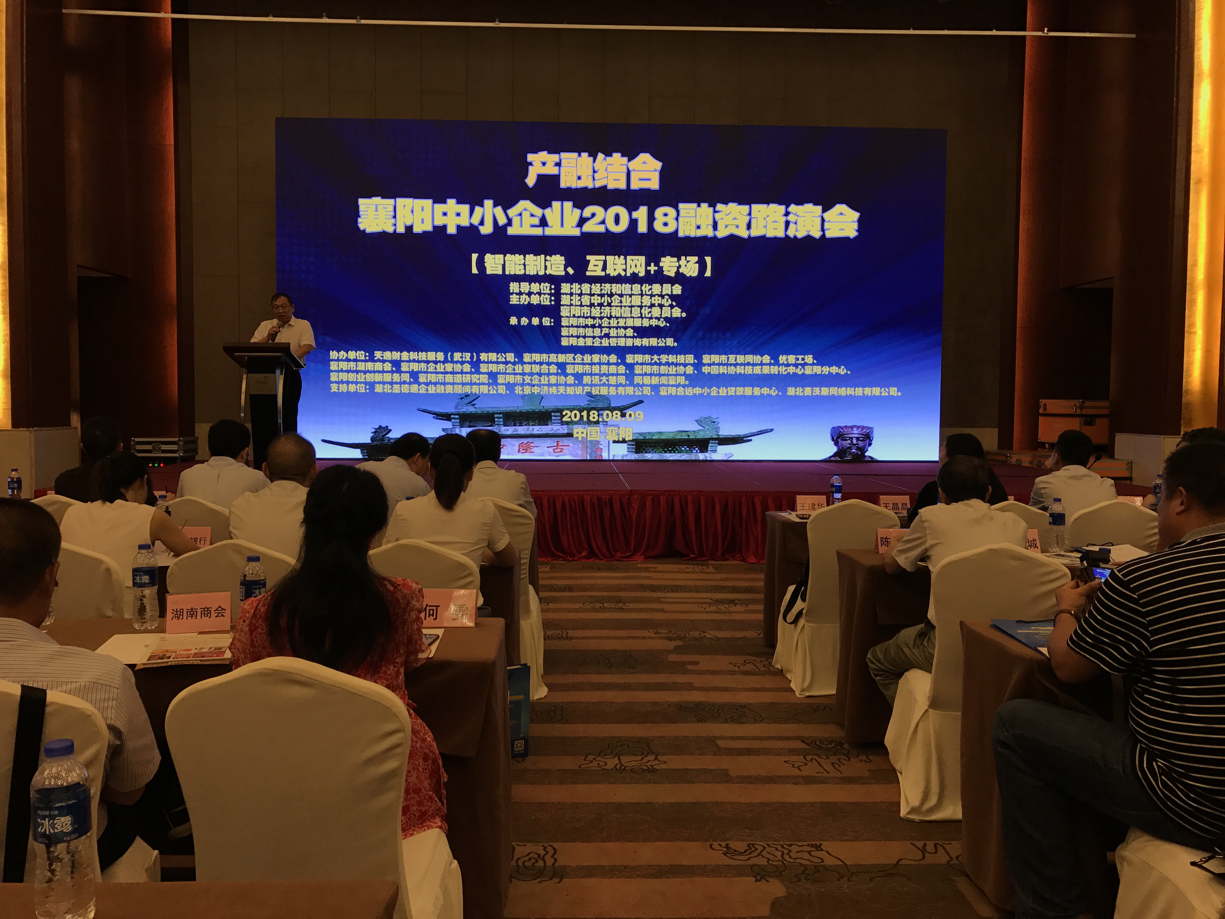 8月9日上午,由湖北省经济和信息化委员会指导,湖北省中小企业服务中心、襄阳市经济和信息化委员会主办,襄阳市中小企业发展服务中心、襄阳金策企业管理咨询有限公司承办、天逸财金科技服务(武汉)有限公司大力支持的“产融结合”襄阳中小企业2018融资路演会-智能制造专场,在襄阳民发世际大酒店成功举行。湖北省中小企业服务中心副主任王建华、襄阳市经济和信息化委员会副主任余长虹、襄阳市中小企业发展服务中心主任江宁等领导,以及华鑫信投资、蓝生智造投资、中财创投、太证资本、天逸金服等三十家金融和投资机构代表和200多家企业参加了本次项目路演会。