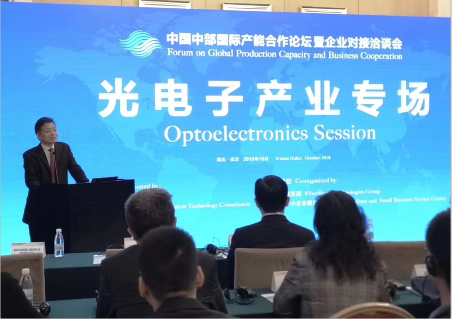 10月20日,中国中部国际产能合作论坛暨企业对接洽谈会光电子产业专场在东湖国际会议中心荆州厅举行。省经信委党组成员、副主任王建民出席会议并致辞。仙桃、襄阳、潜江等市经信委负责人,烽火、长飞、梦芯、高德、依迅、伯瀚、华耀、摩洛哥PCS Invest等国内外光电子企业近80位高层参会,意大利卡西诺市达纳、哈卡拉两位副市长全程参会并传达了合作意向。