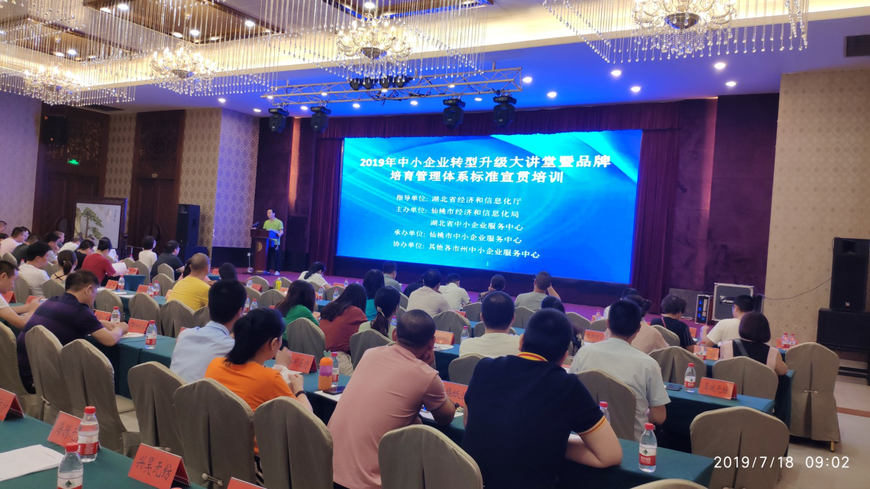 为贯彻落实工信部2019年工业产品质量品牌工作部署,引导我省企业科学培育品牌,深化品牌培育建设,7月18日,在省经信厅科技处的指导下,省中小企业服务中心联合仙桃市经济和信息化局、仙桃市中小企业服务中心共同举办了品牌培育管理体系标准宣贯培训。本次培训主会场设立在仙桃,其他市州设立视频直播分会场。