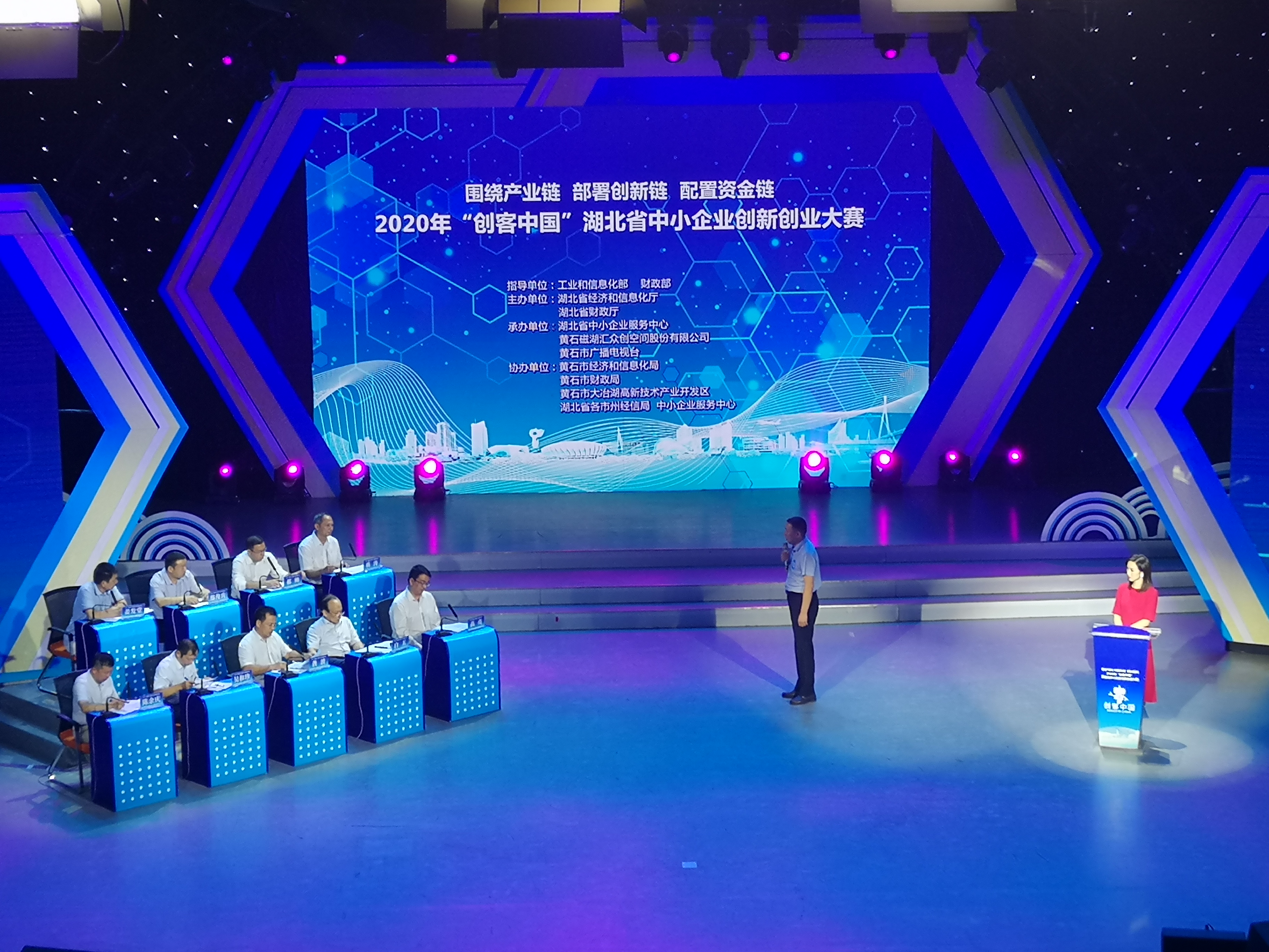 8月18日,2020年“创客中国”湖北省中小企业创新创业大赛决赛在黄石市成功举办。省经信厅党组书记、厅长刘海军,黄石市委常委、常务副市长徐继祥分别致辞,省经信厅党组成员、副厅长孟春林出席并为获得一等奖的选手颁奖。