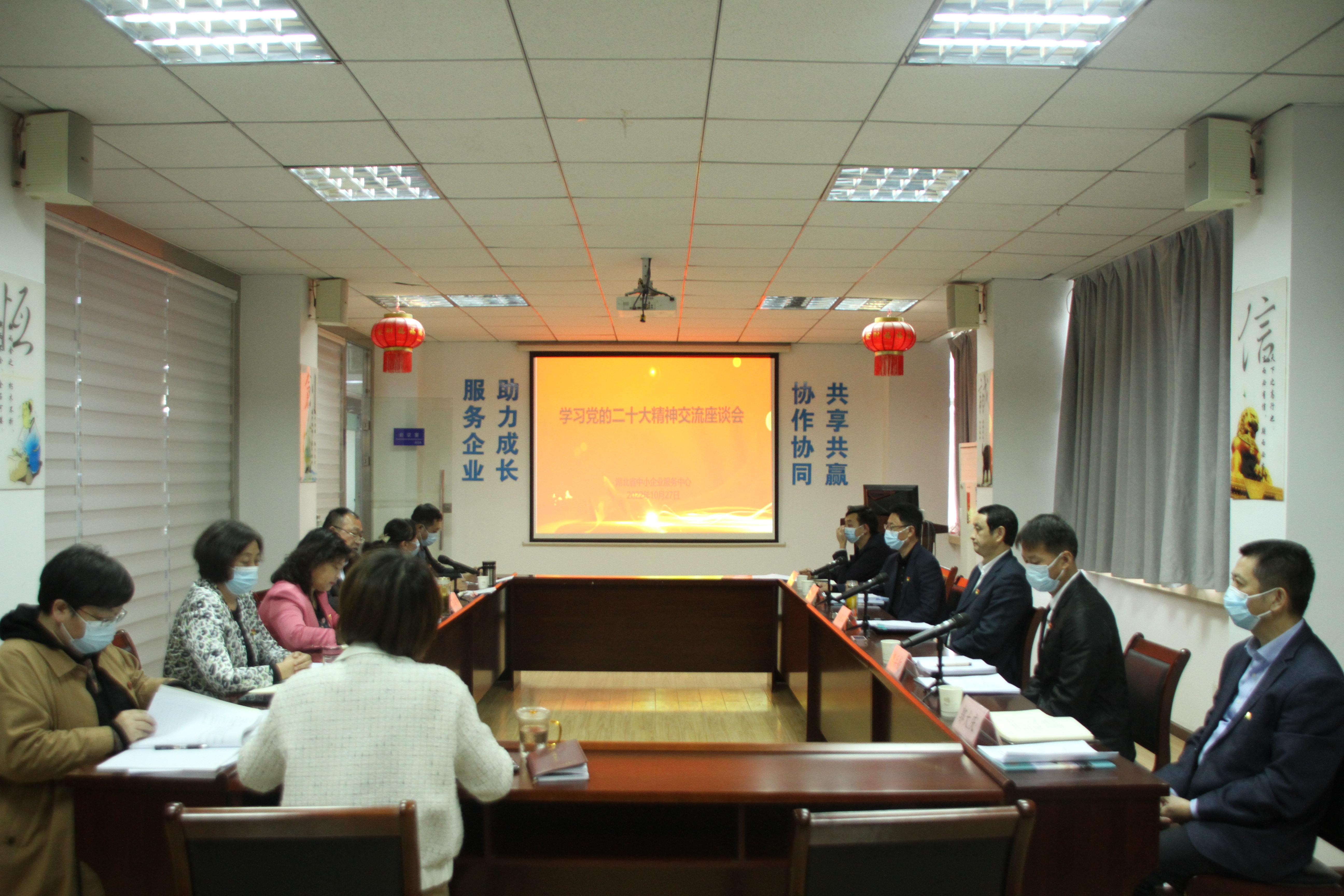 交流座谈会由中心党支部书记、主任李承绘主持, 与会党员共同学习了党的二十大报告精神、习近平总书记在党的二十大闭幕会上的重要讲话精神、习近平总书记在二十届中共中央政治局常委同中外记者见面时的重要讲话精神以及湖北省传达学习党的二十大精神会议精神。中心班子成员和专精特新部、电子部、研究部3位党员代表紧密联系工作和思想实际,围绕学习党的二十大精神逐一发言,从领会精神实质、锤炼党性修养、砥砺能力品行等方面谈了学习所获、思考所得。
