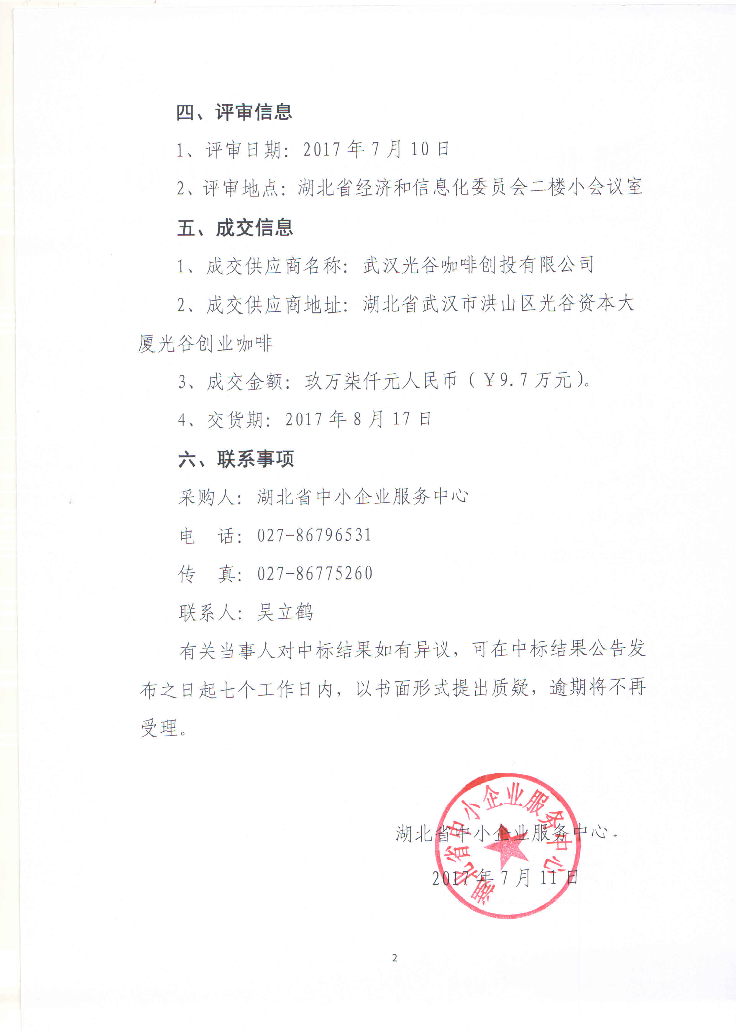 湖北省省级政府采购成交结果公告(2017年“创客中国”湖北省创新创业大赛项目)