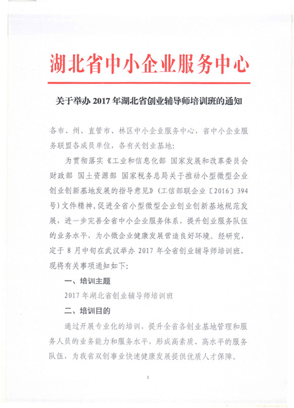 关于举办2017年湖北省创业辅导师培训班的通知