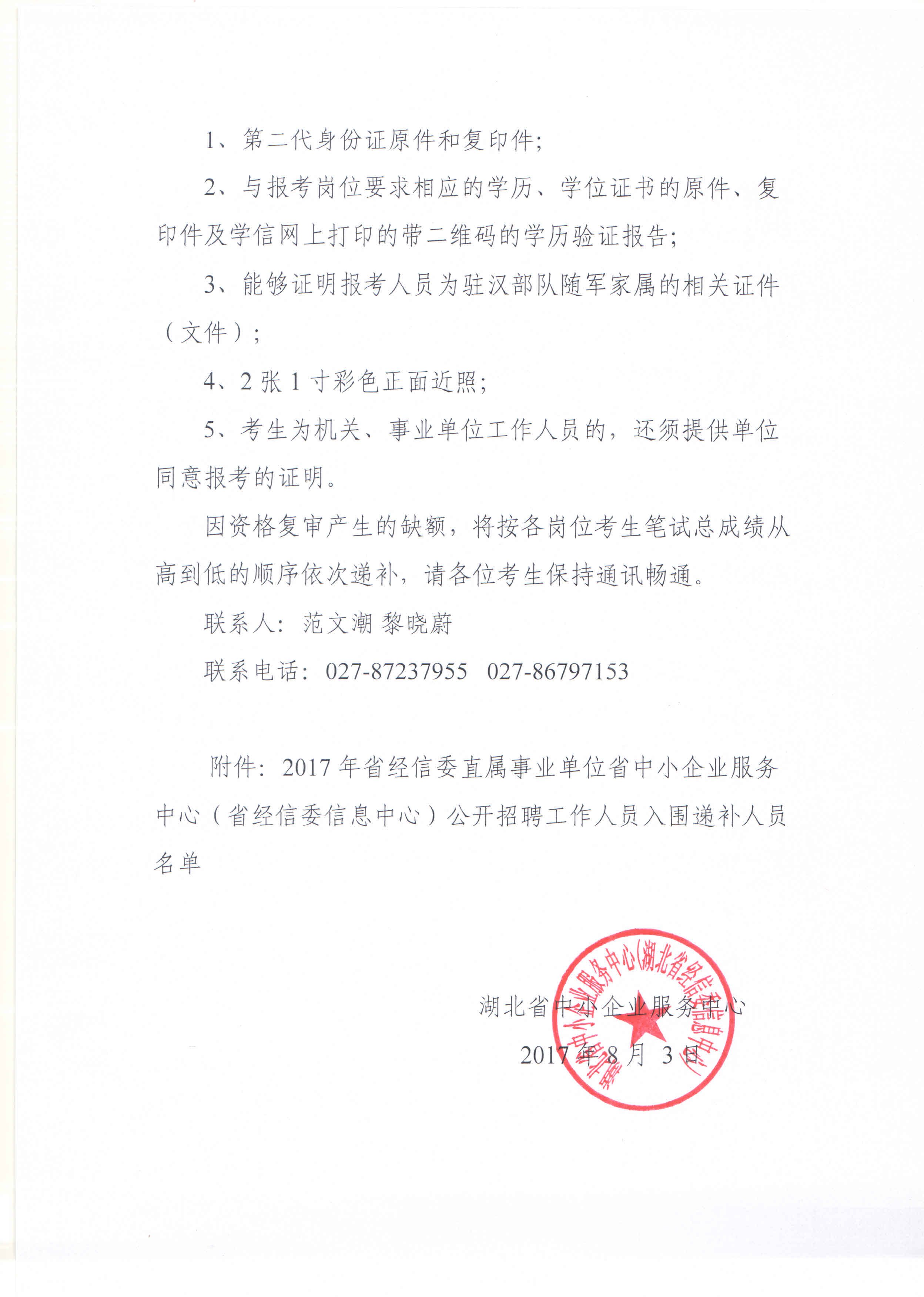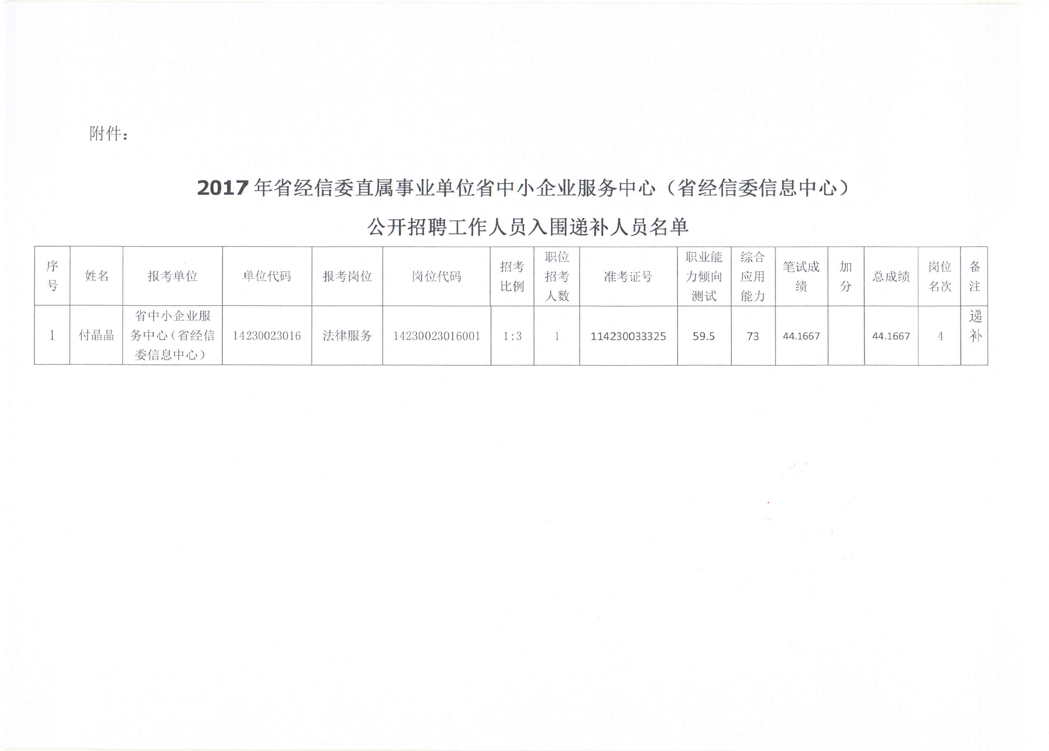 省中小企业服务中心(省经信委信息中心)关于2017年省直事业单位公开招聘考试资格复审递补公告
