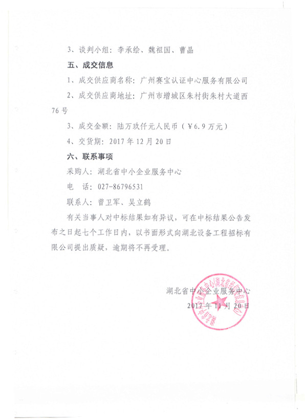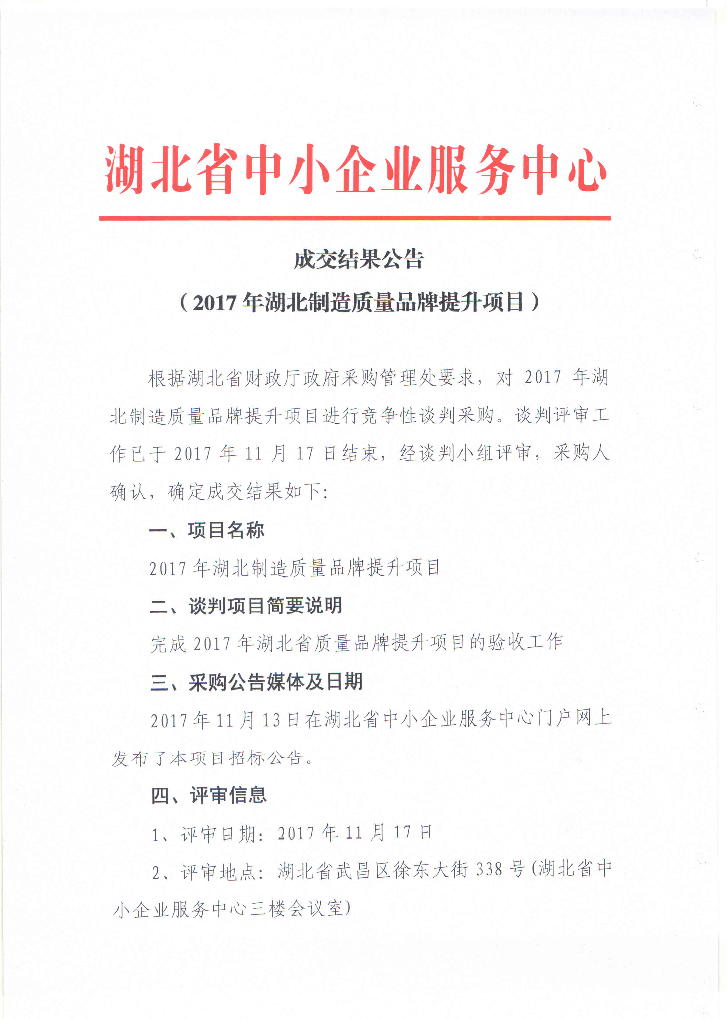 成交结果公告(2017年湖北制造质量品牌提升项目)