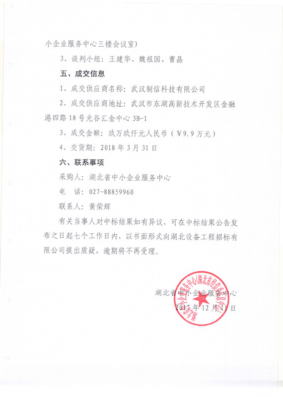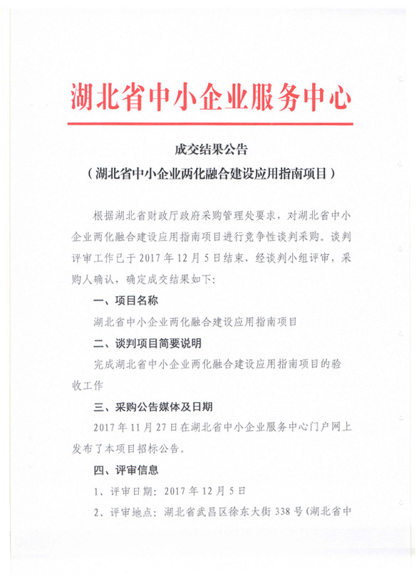 成交结果公告 (湖北省中小企业两化融合建设应用指南项目)