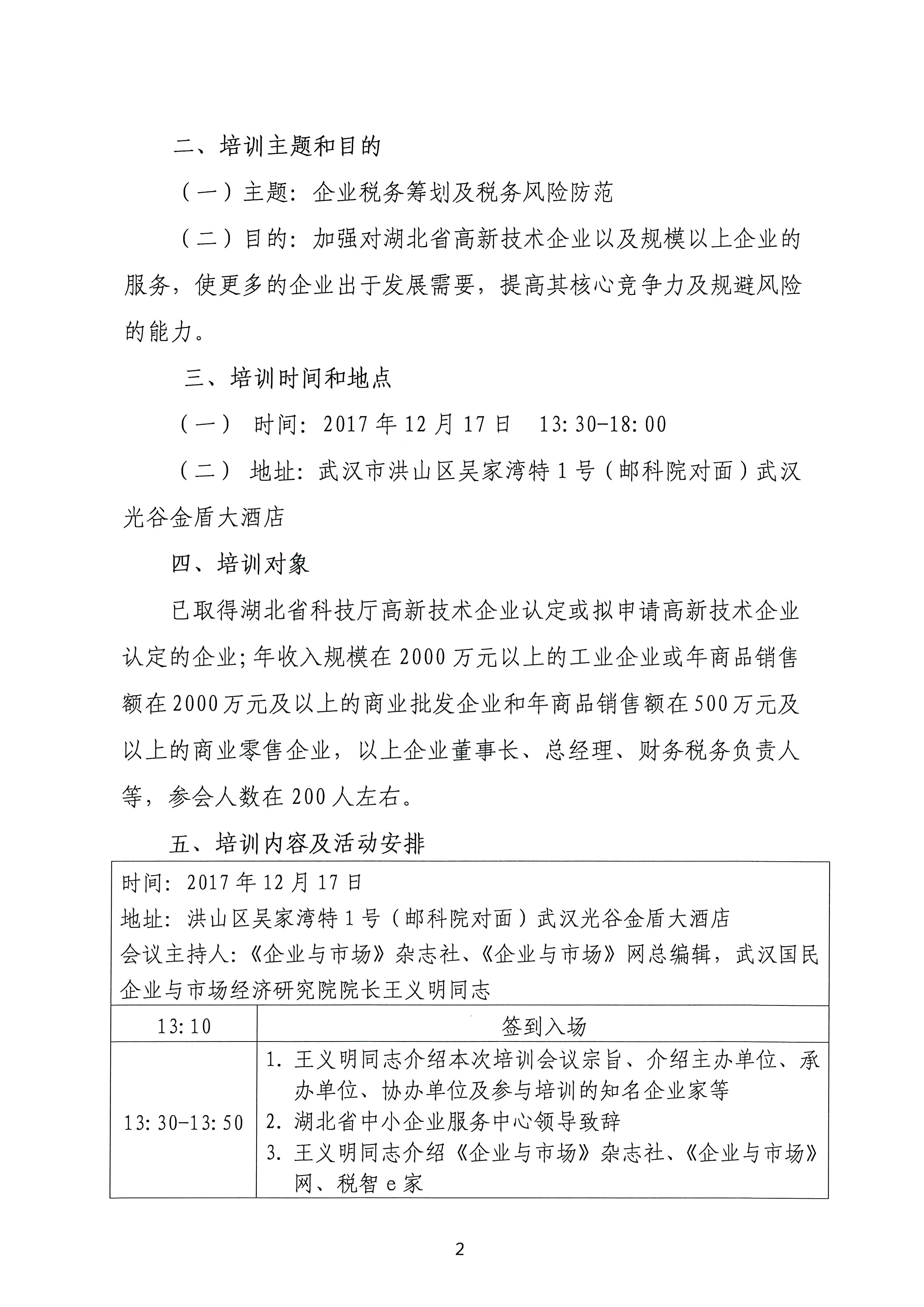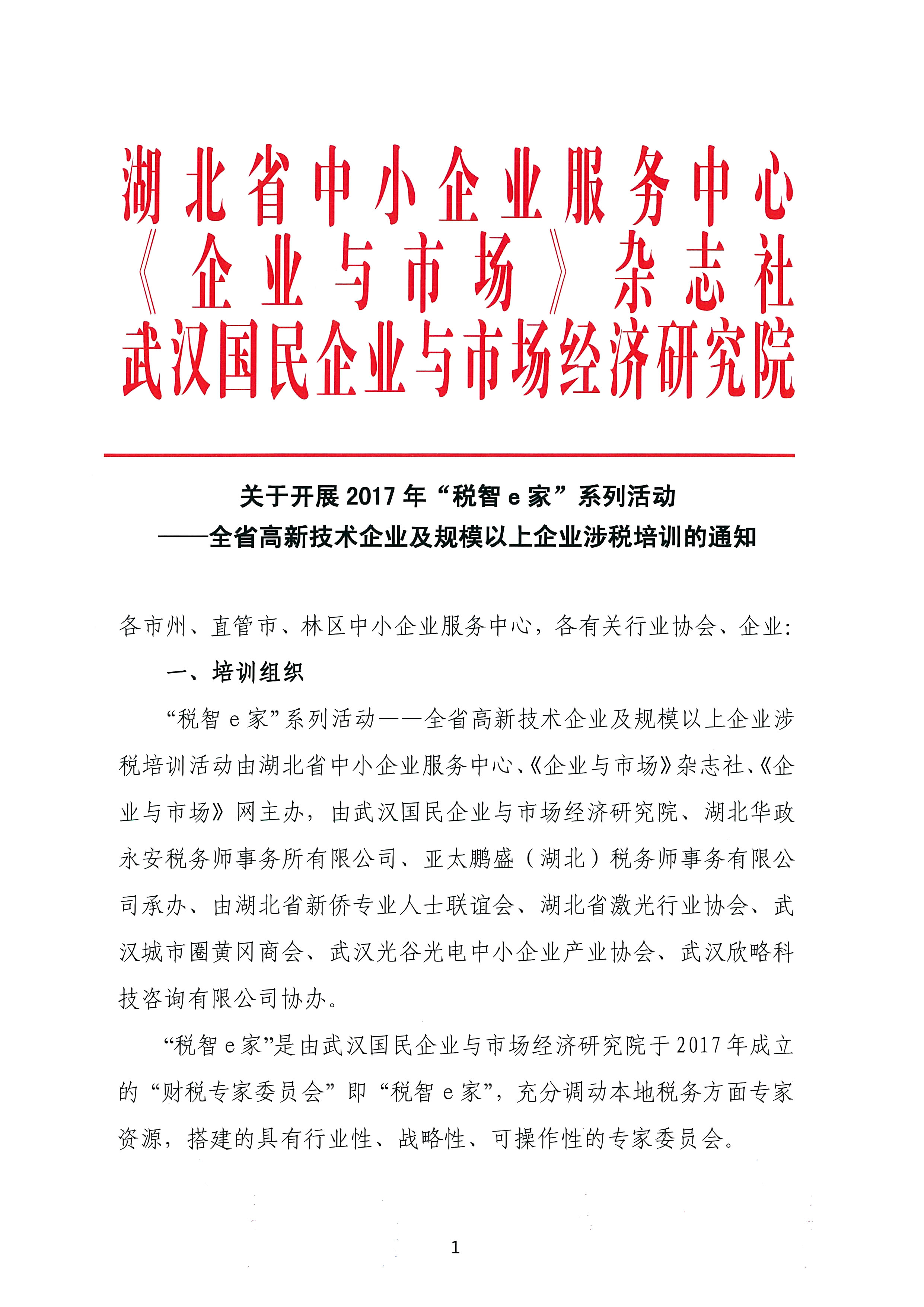 关于开展2017年“税智e家”系列活动——全省高新技术企业及规模以上企业涉税培训的通知