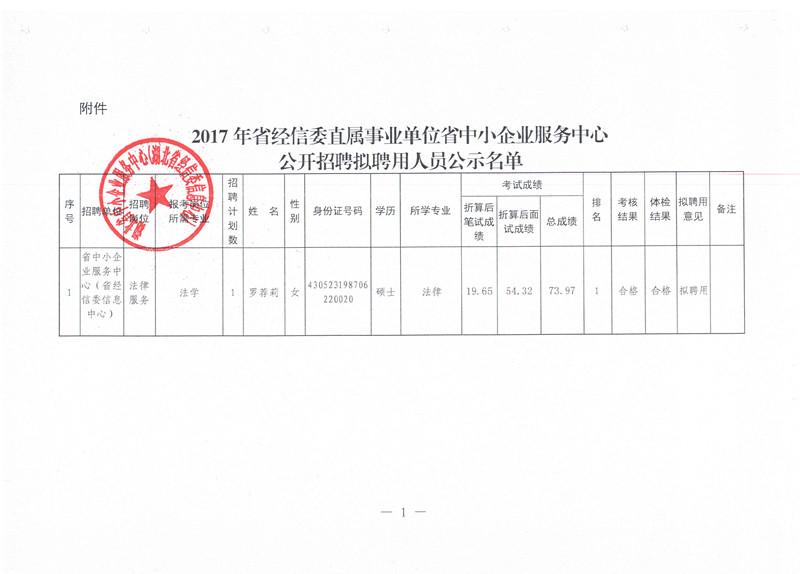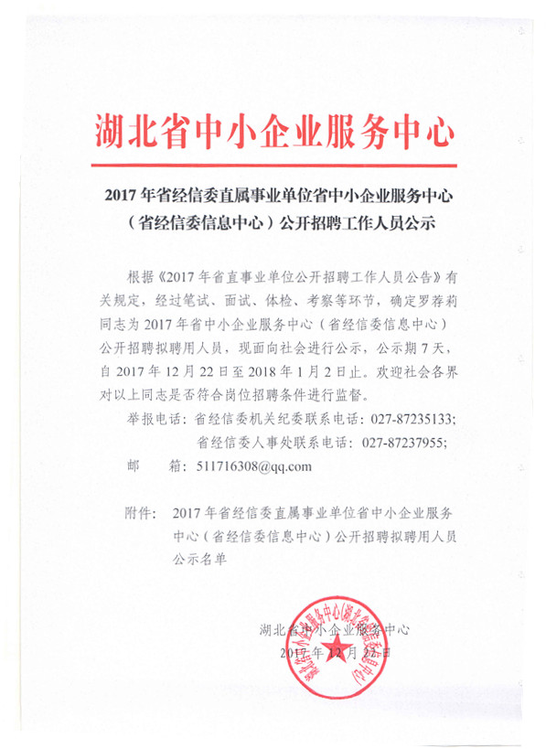 2017年省经信委直属事业单位省中小企业服务中心(省经信委信息中心)公开招聘工作人员公示