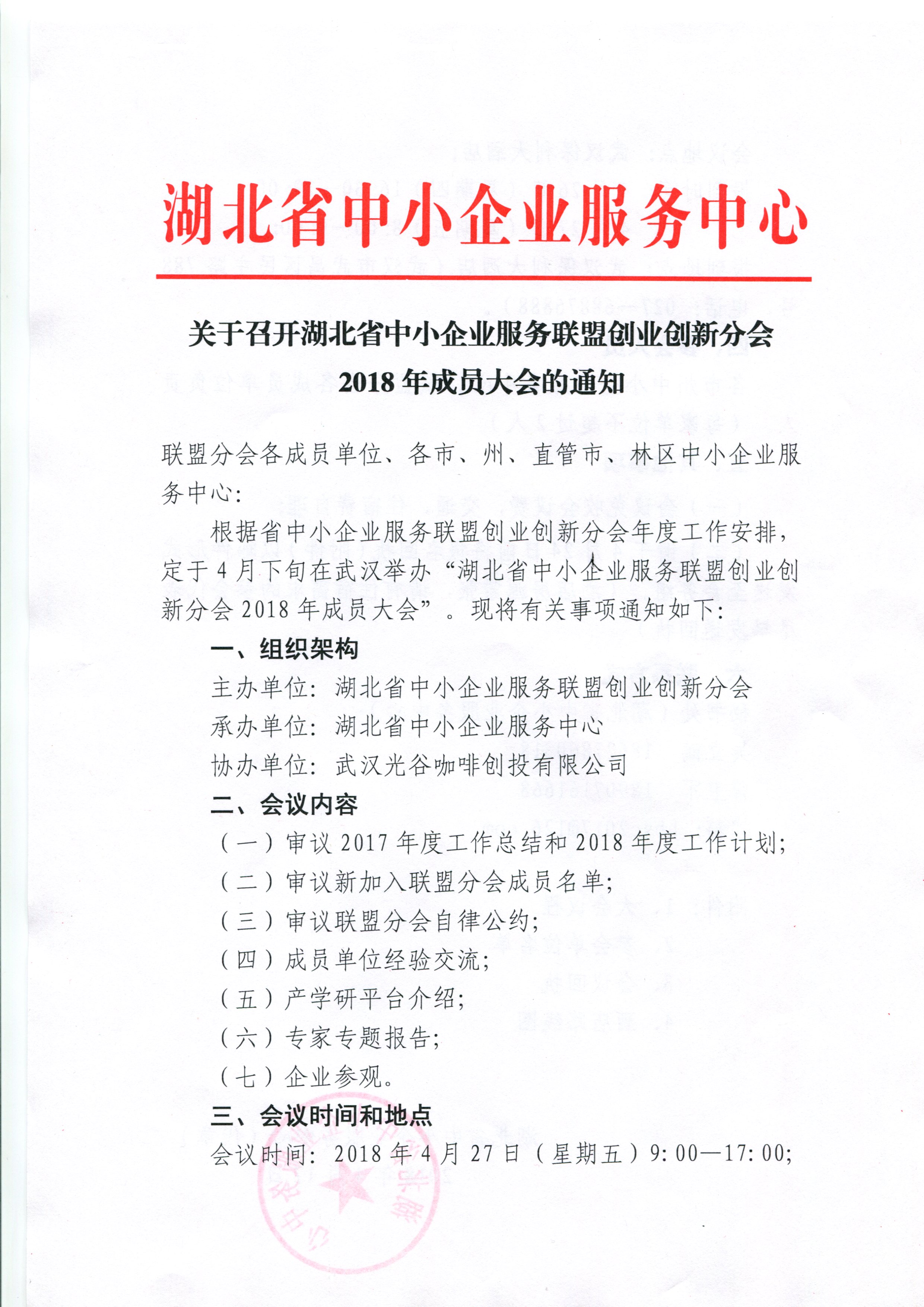 关于召开湖北省中小企业服务联盟创业创新分会2018年成员大会的通知