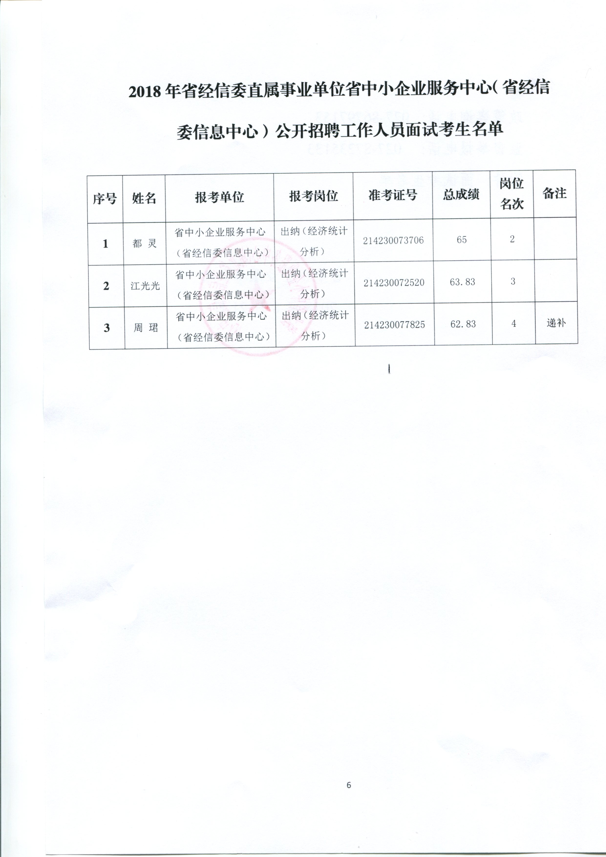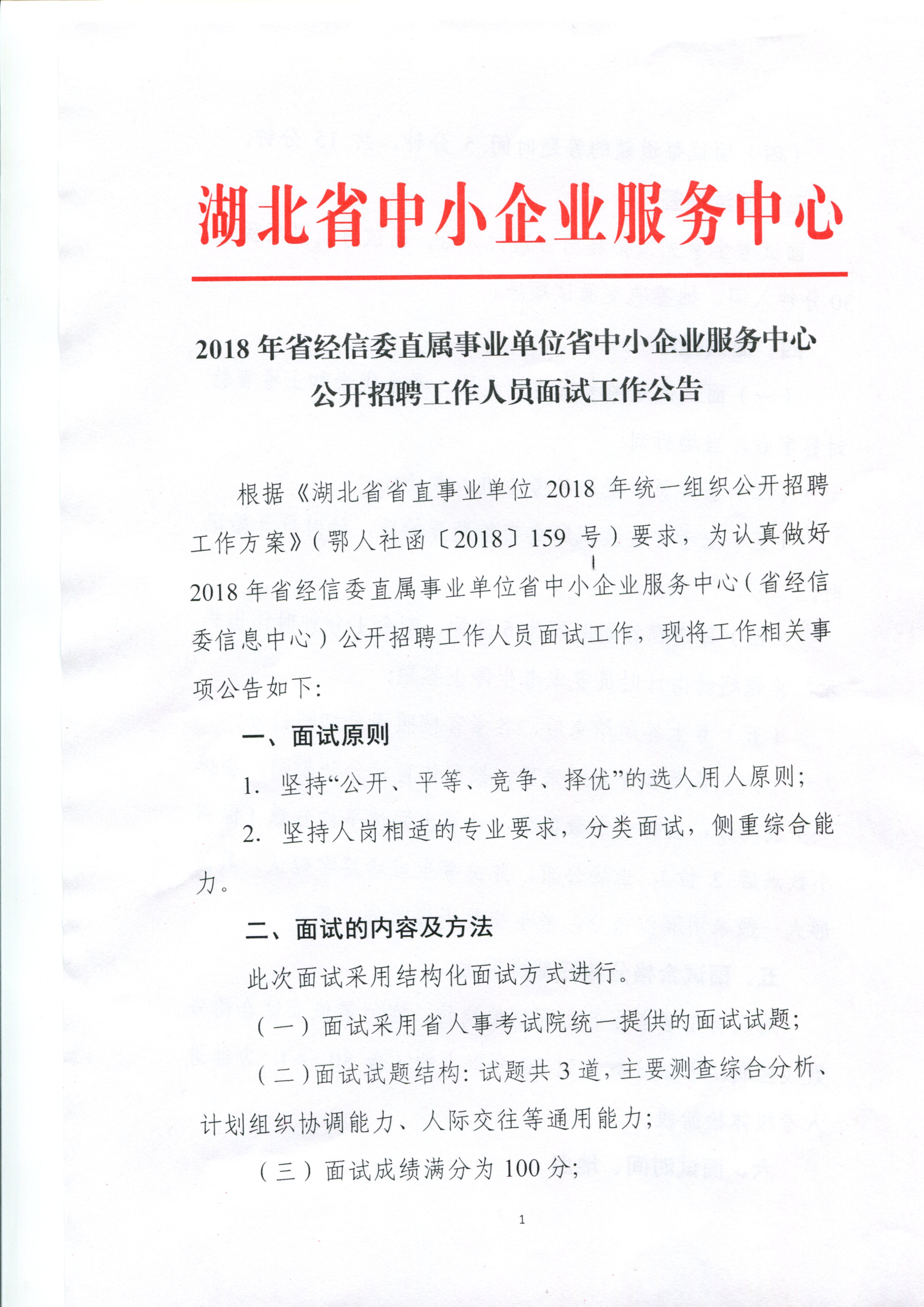 2018年省经信委直属事业单位省中小企业服务中心公开招聘工作人员面试工作公告