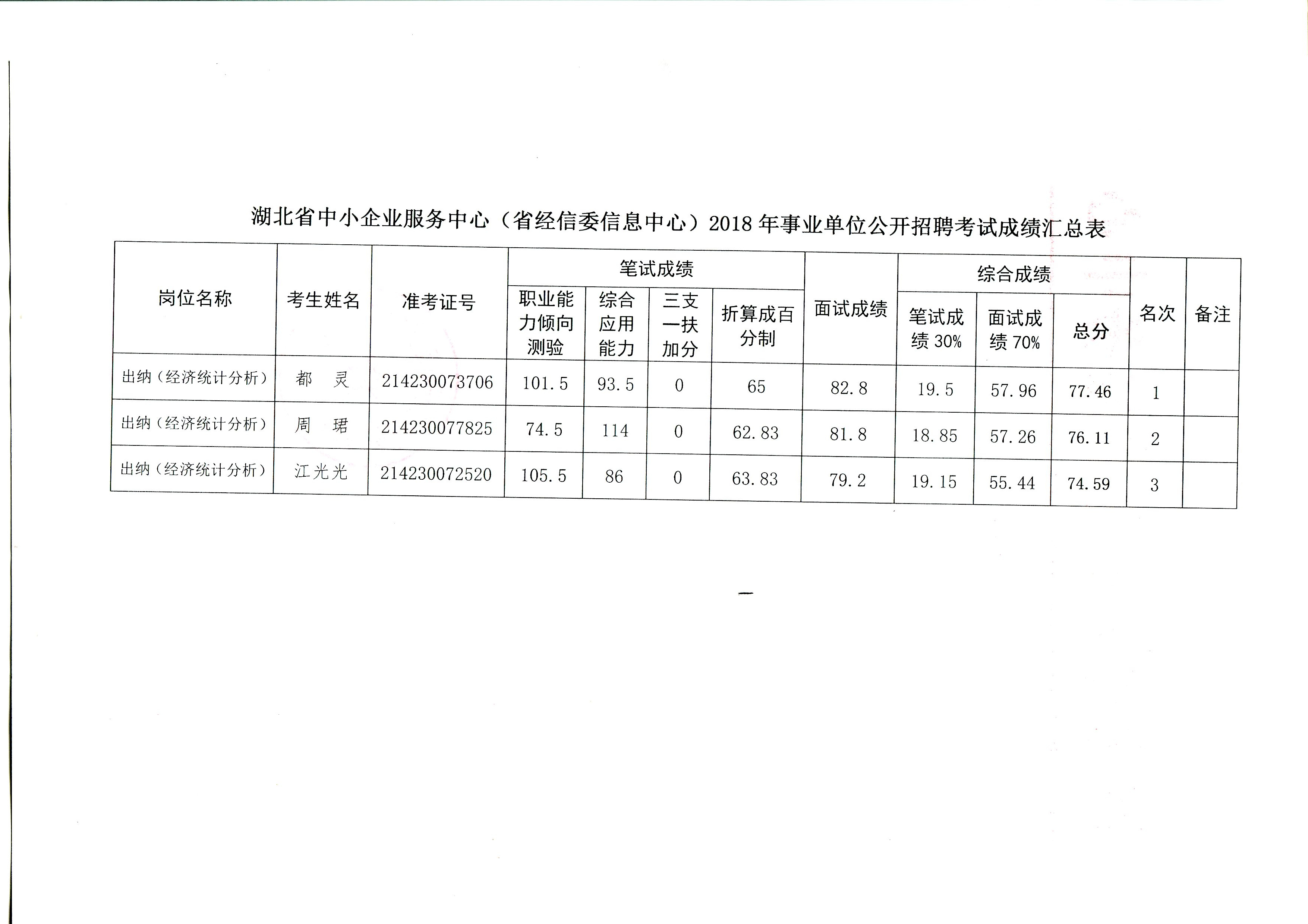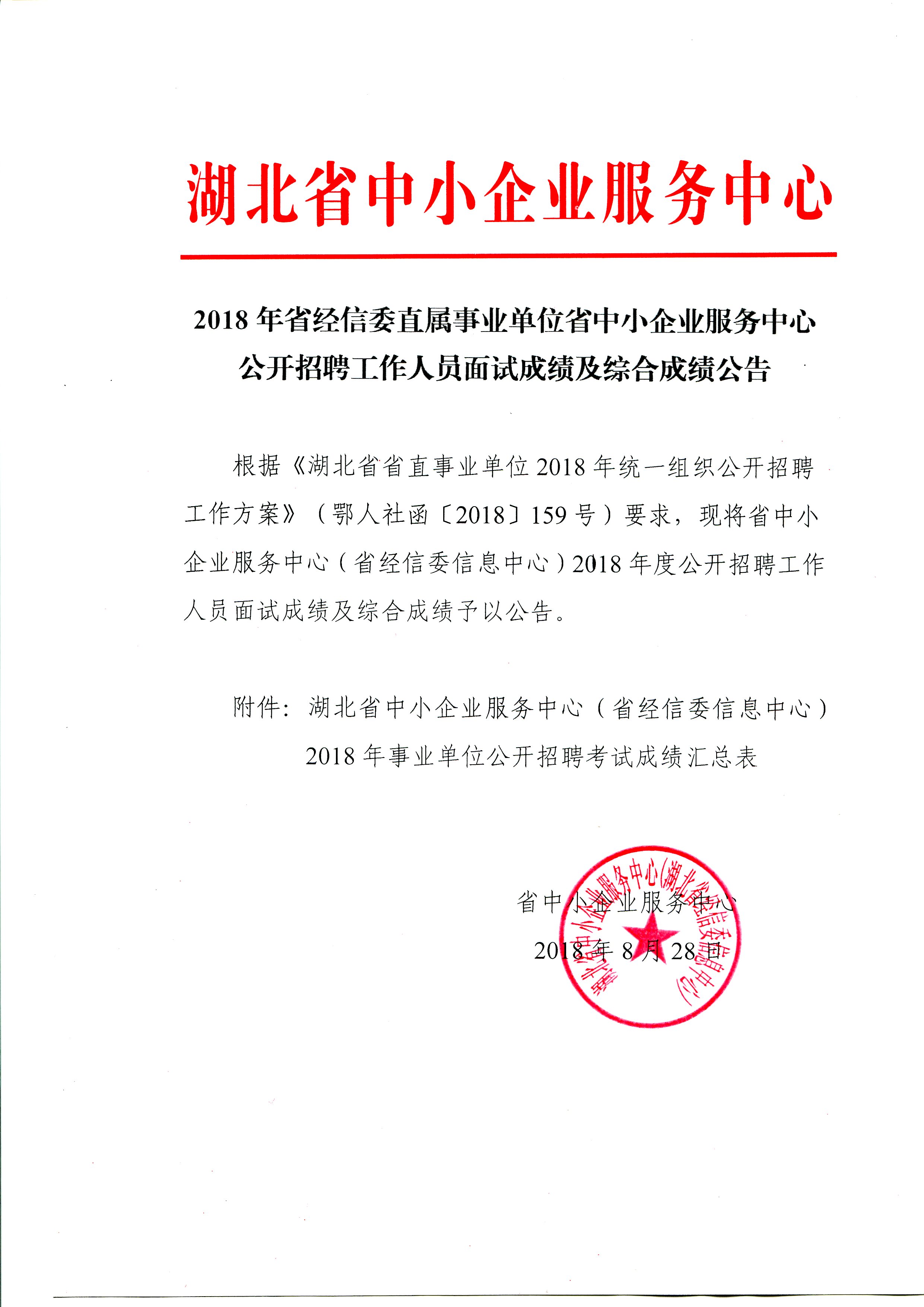 2018年省经信委直属事业单位省中小企业服务中心公开招聘工作人员面试成绩及综合成绩公告
