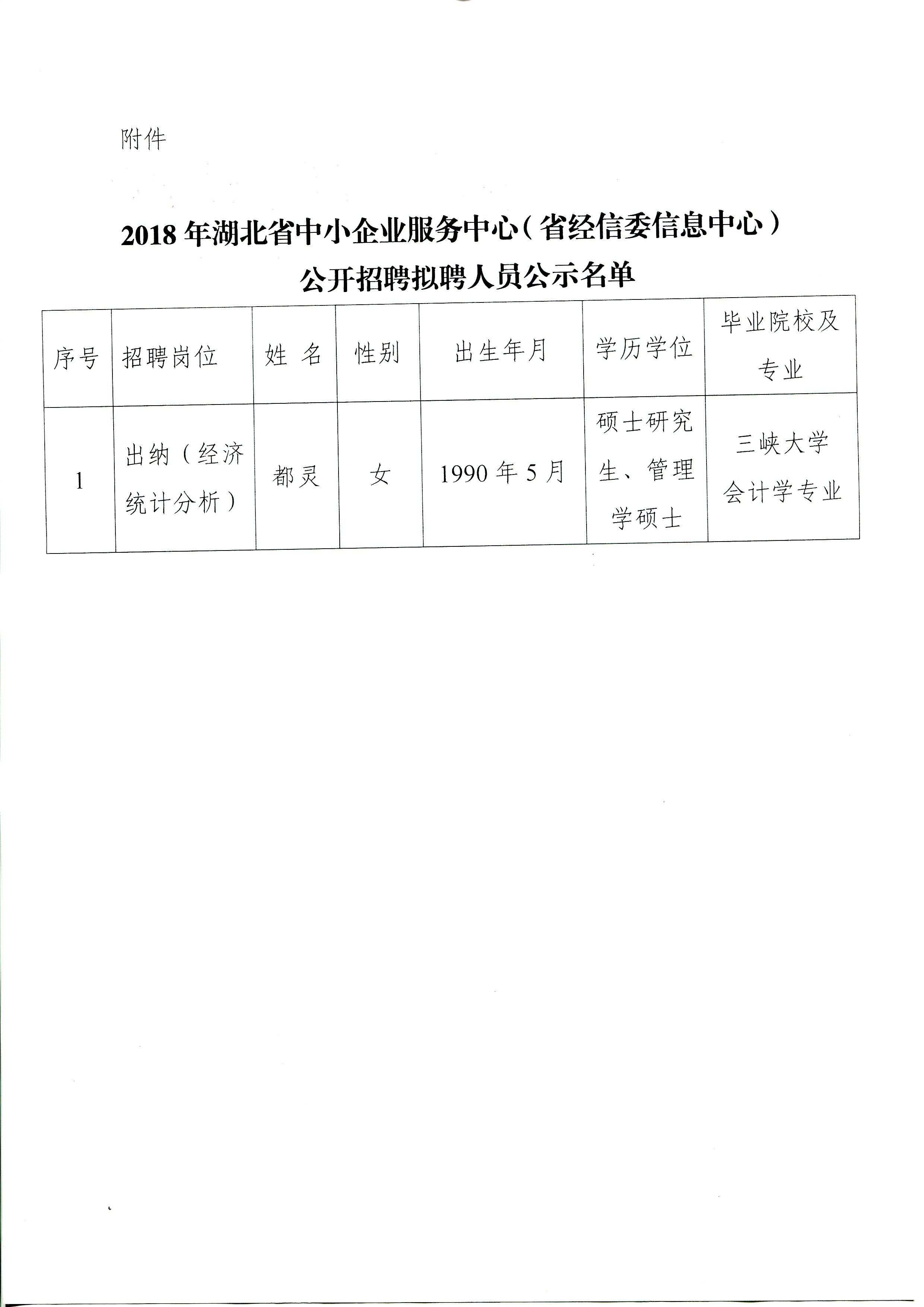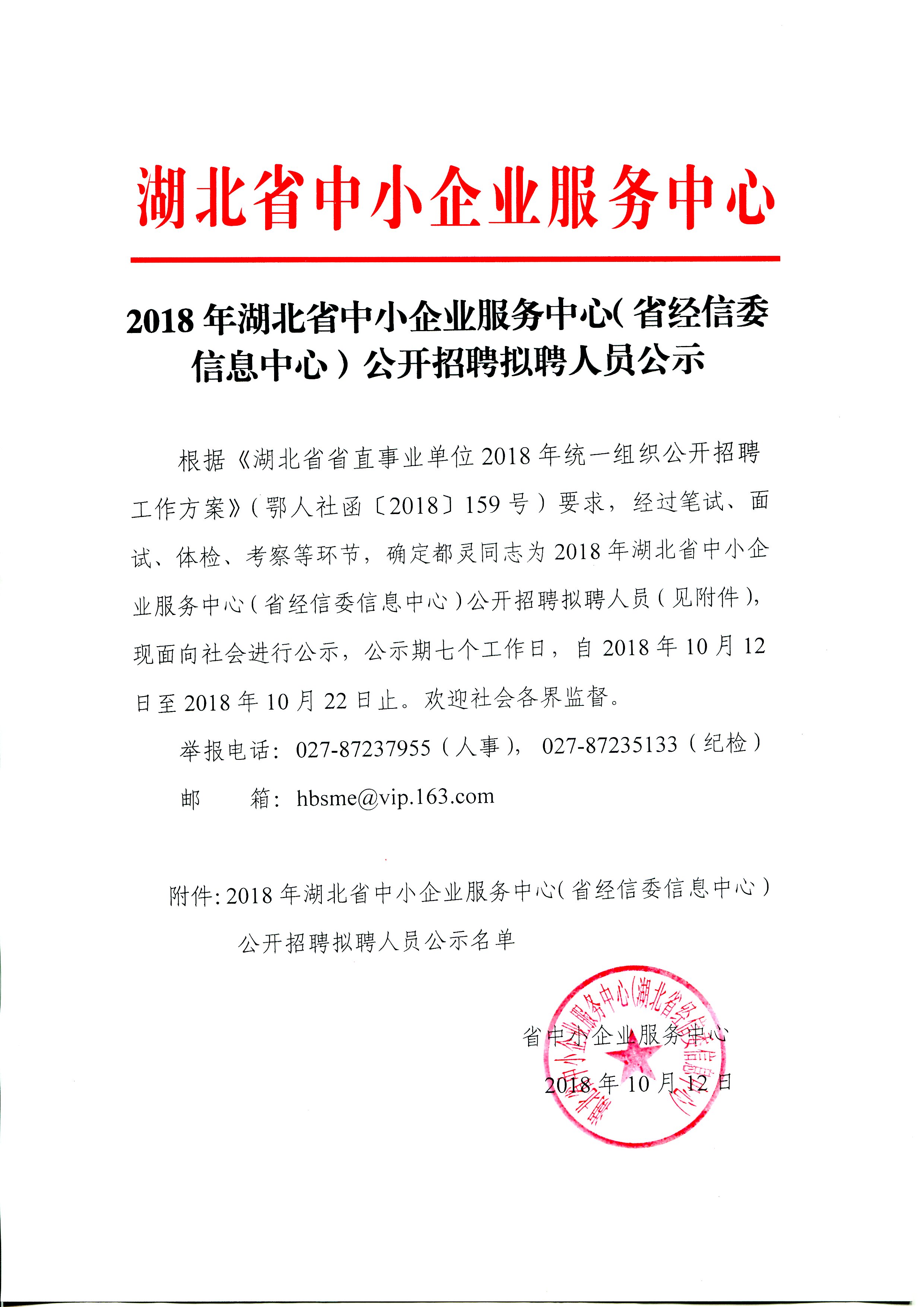 2018年湖北省中小企业服务中心(省经信委信息中心)公开招聘拟聘人员公示