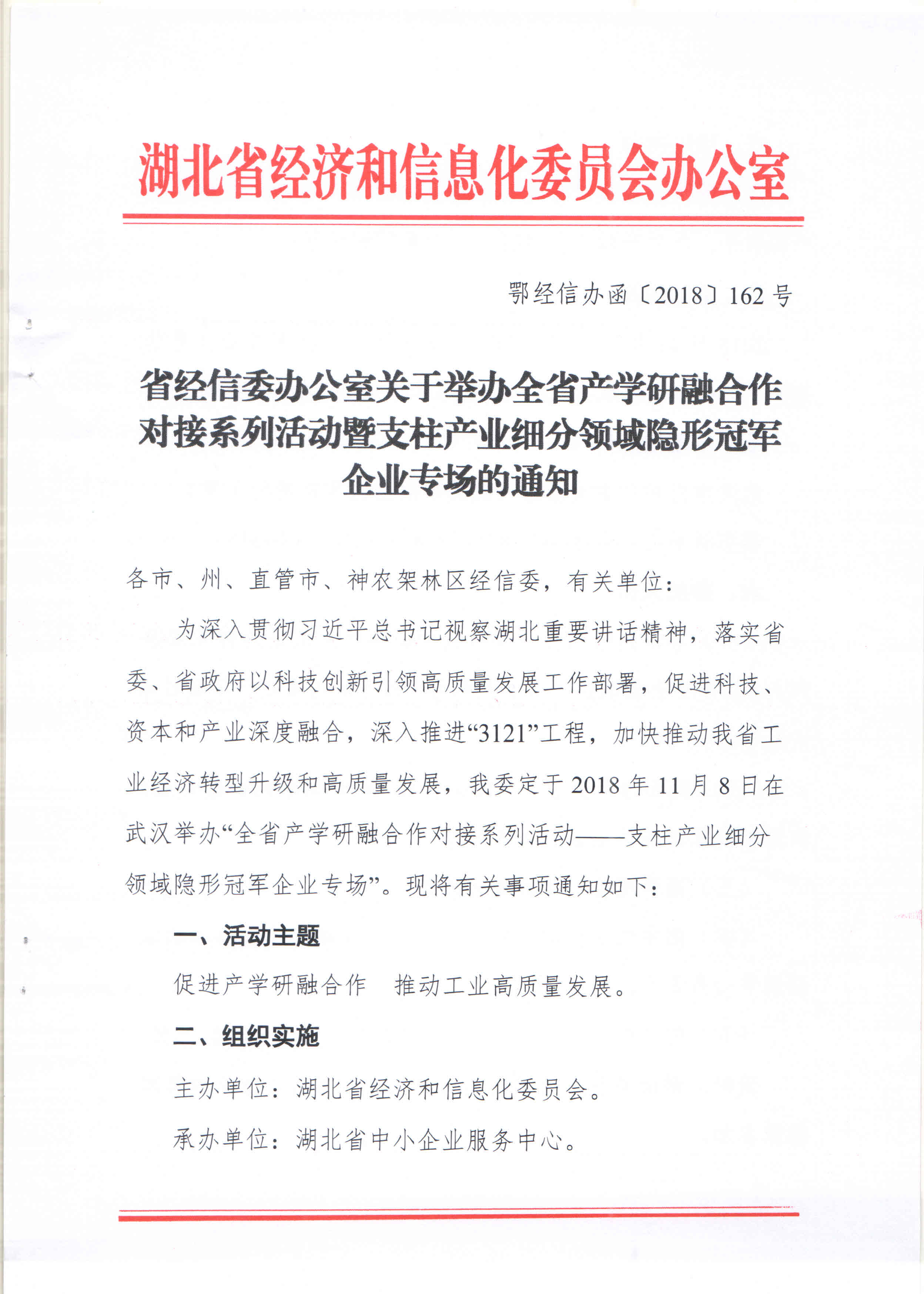 省经信委办公室关于举办全省产学研融合作对接系列活动暨支柱产业细分领域隐形冠军企业专场的通知