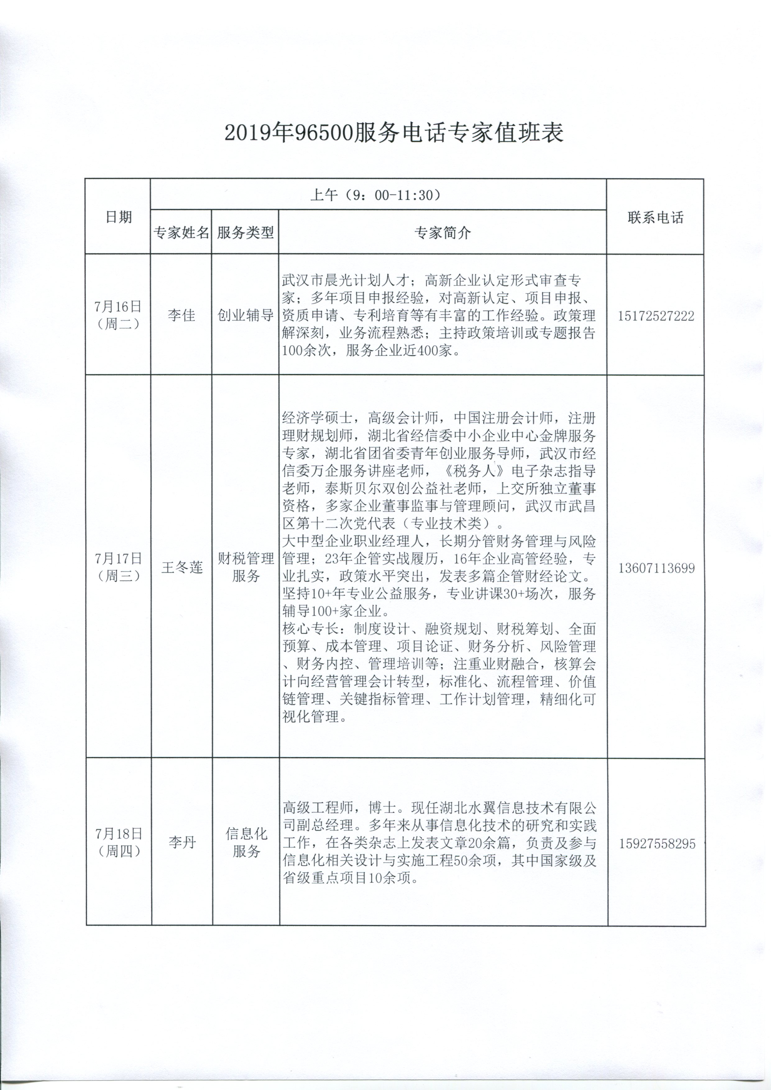 第三周96500服务电话专家值班表
