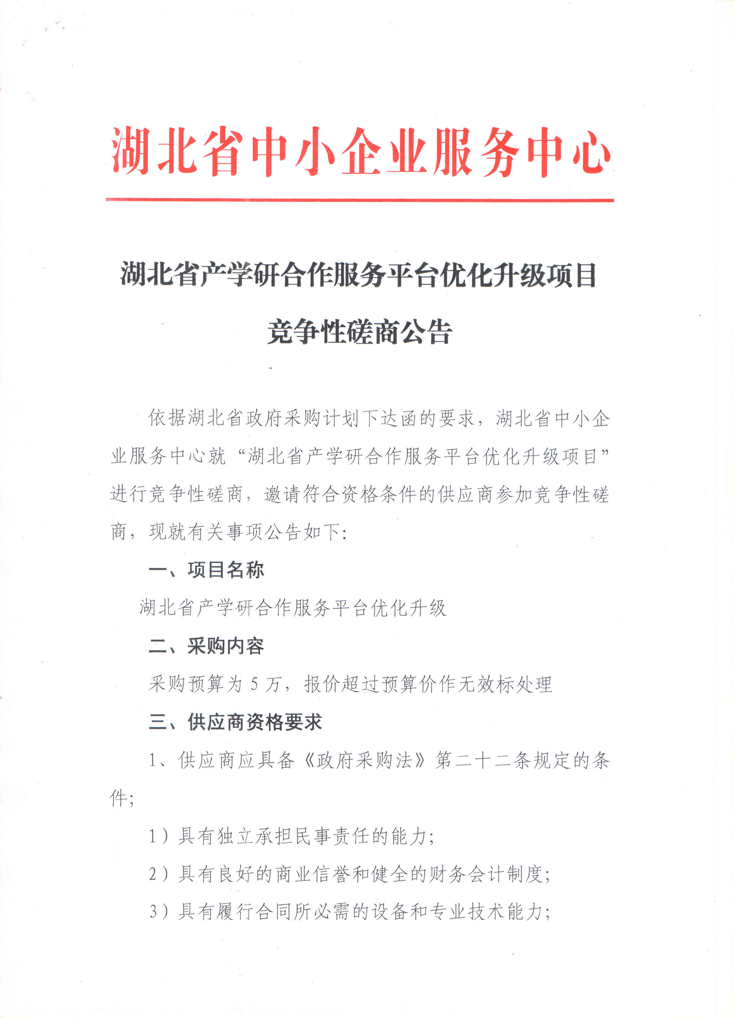 湖北省产学研合作服务平台优化升级项目竞争性磋商公告