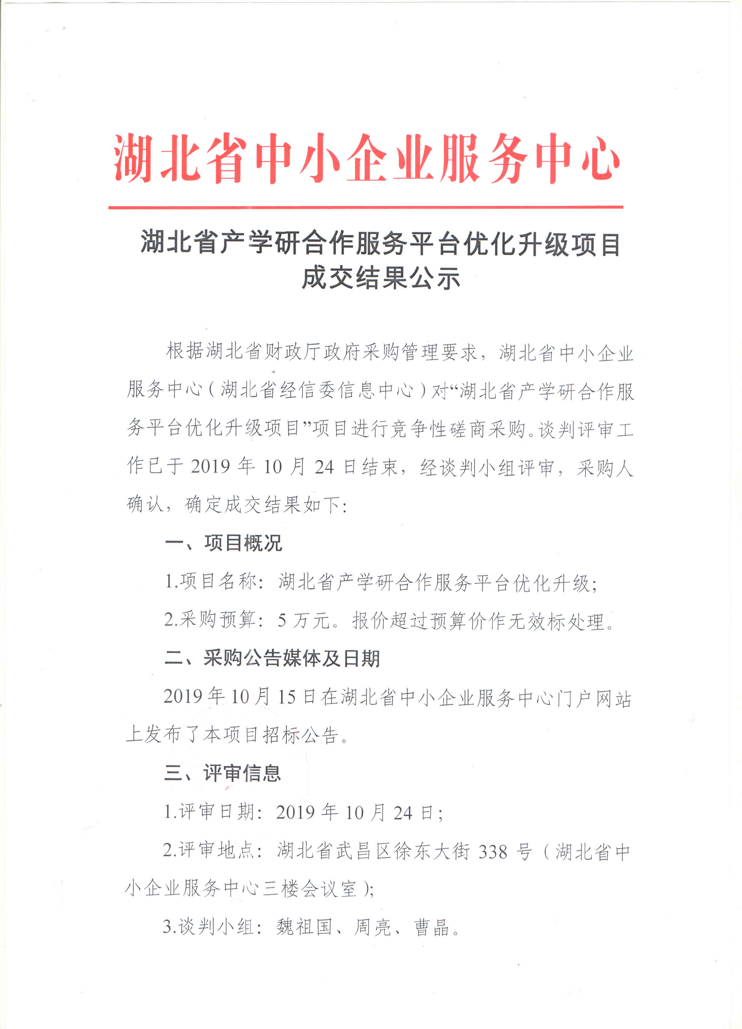 湖北省产学研合作服务平台优化升级项目成交结果公示