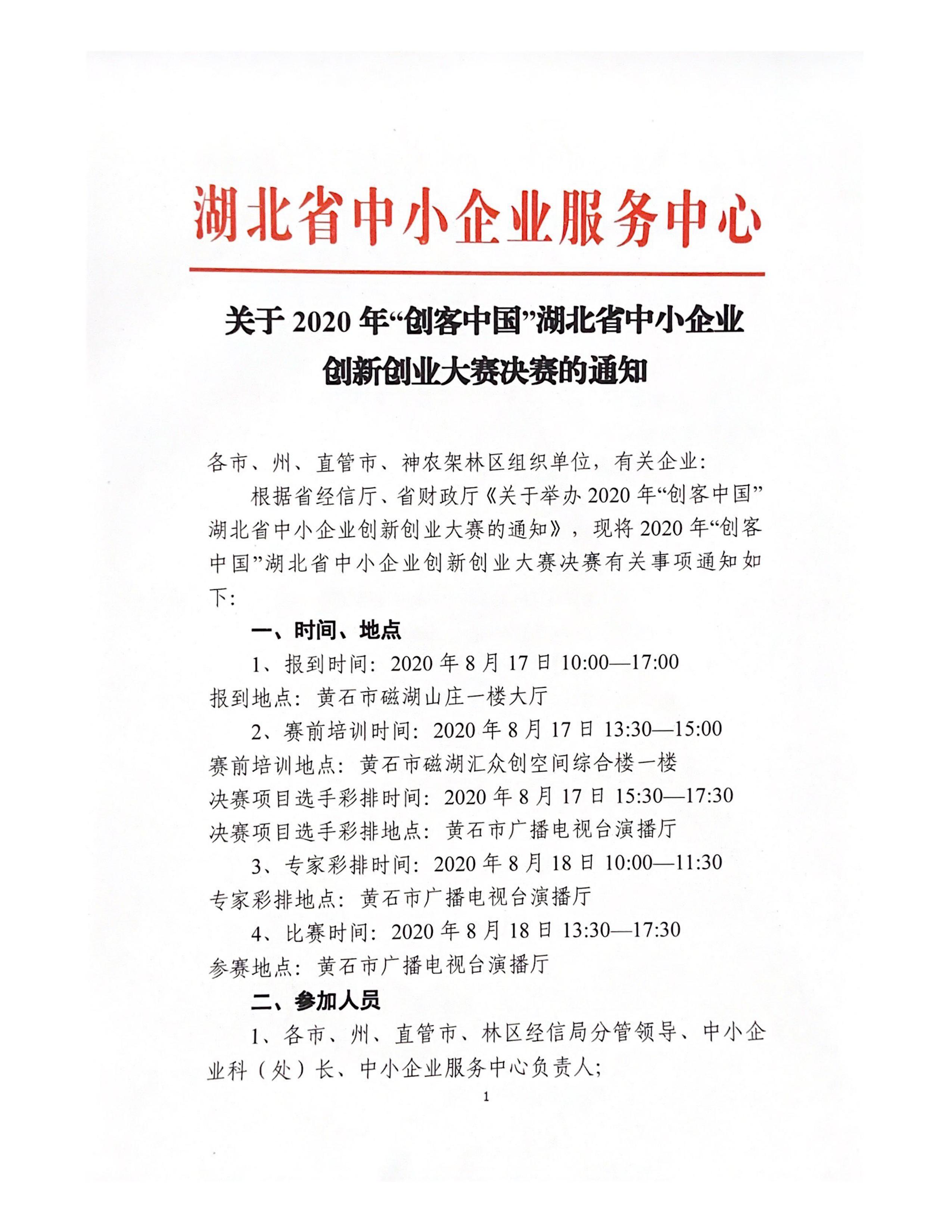 关于2020年“创客中国”湖北省中小企业创新创业大赛决赛的通知